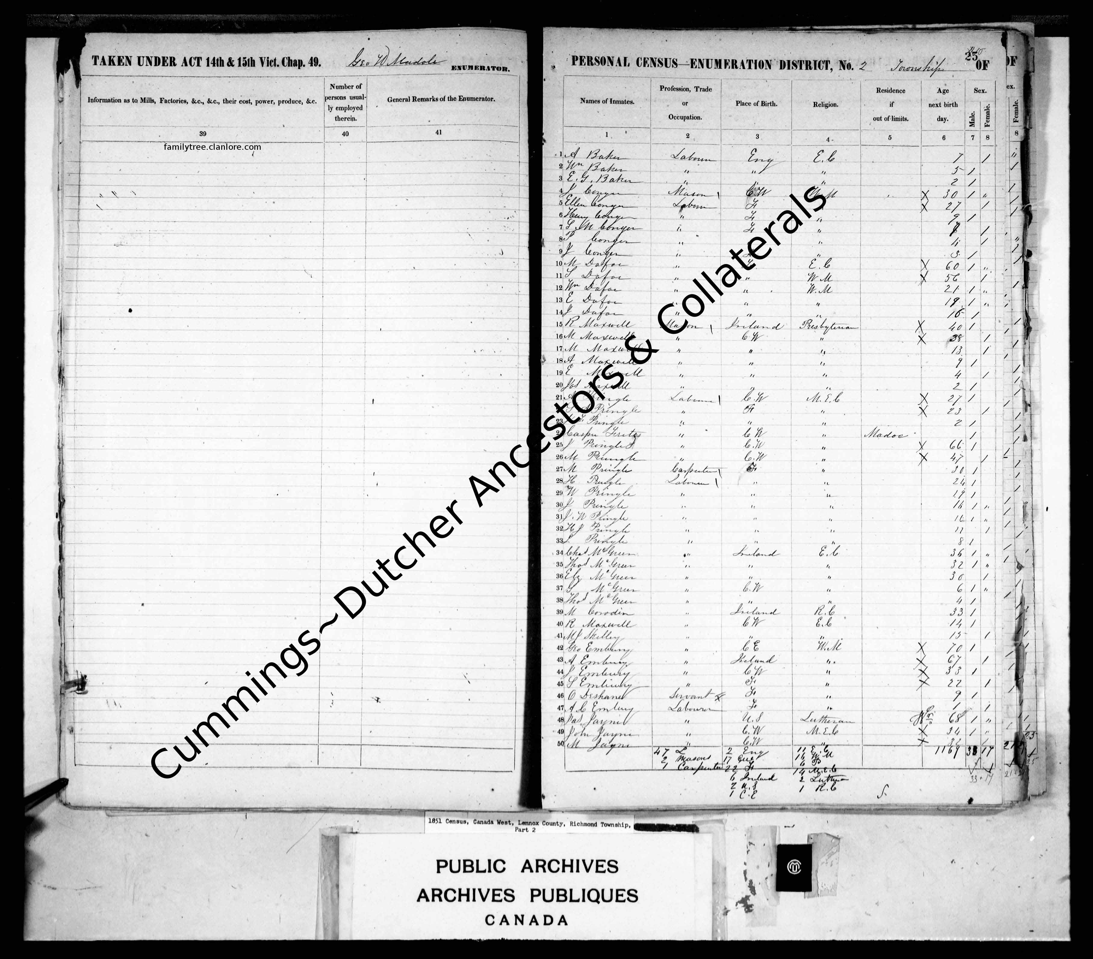 Перепись | 1851 Richmond Township, Lennox Co., Canada West |