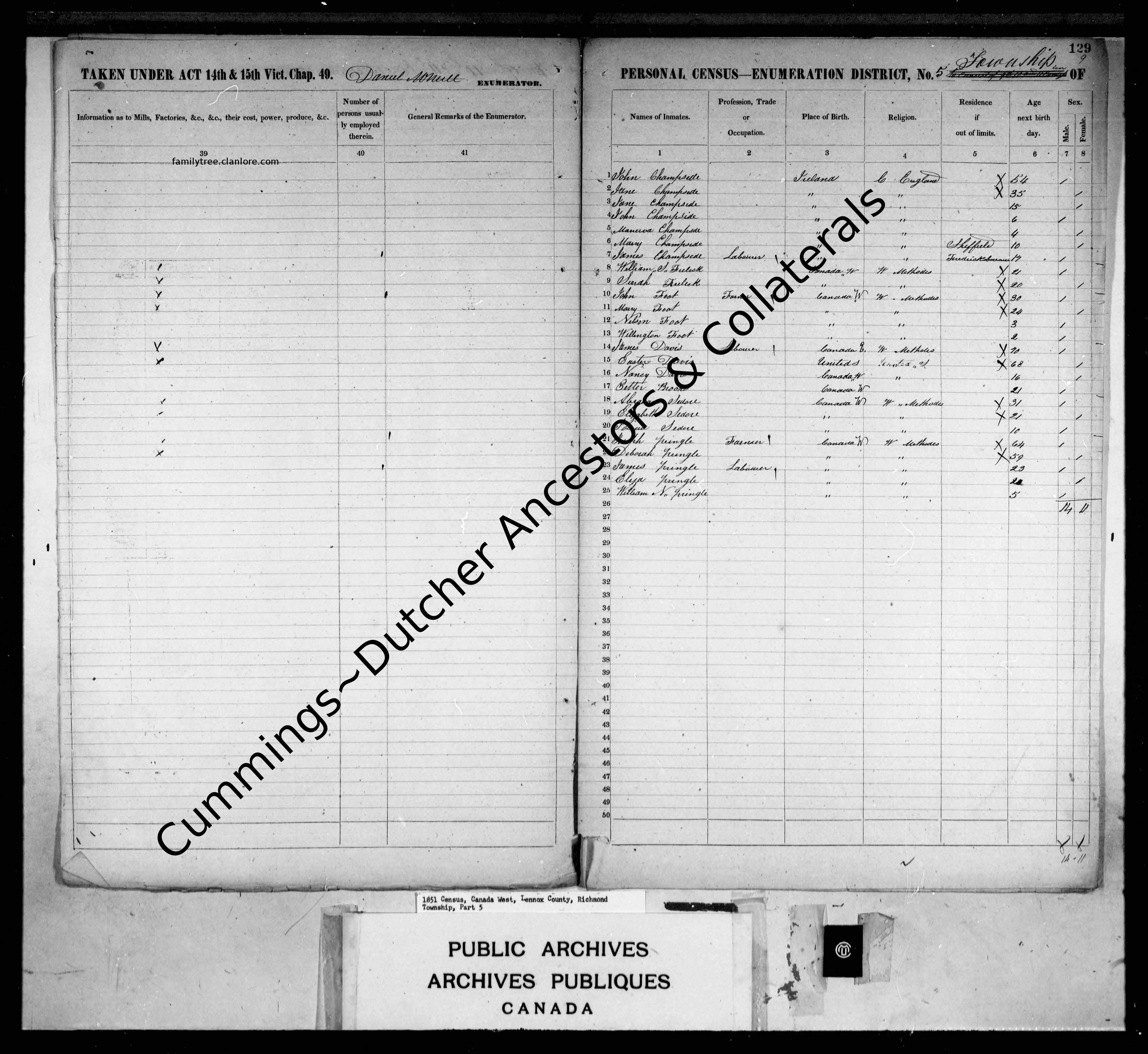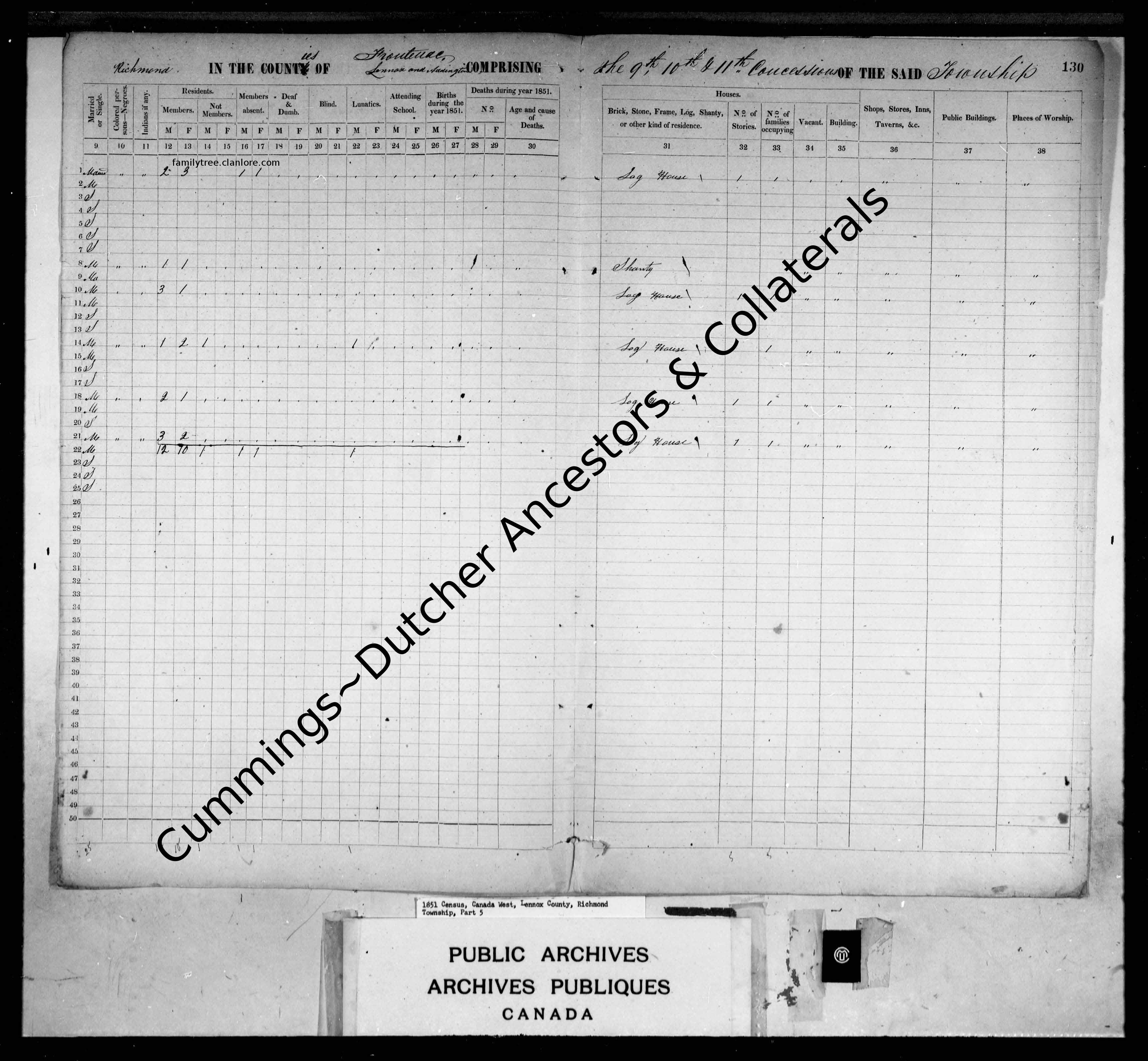 | تعداد | ١٨٥١ Richmond Township، Lennox Co.، Canada West |