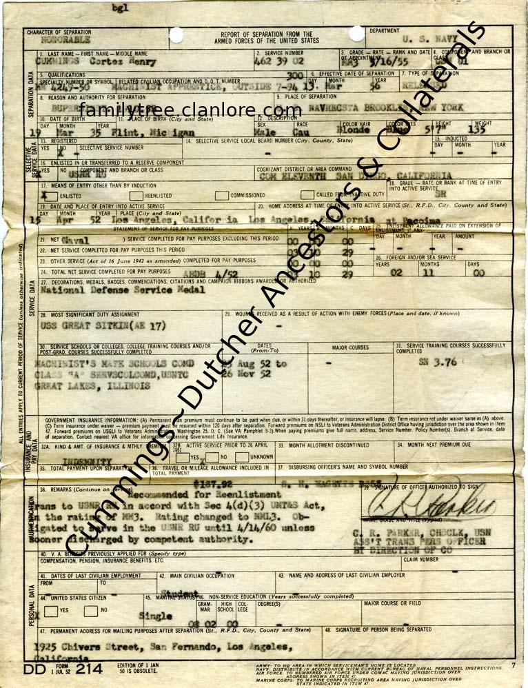 Military Service | Navy 1st Enlistment 13 March 1956 (Age 20) USS Great Sitkin (AE 17) Note: |