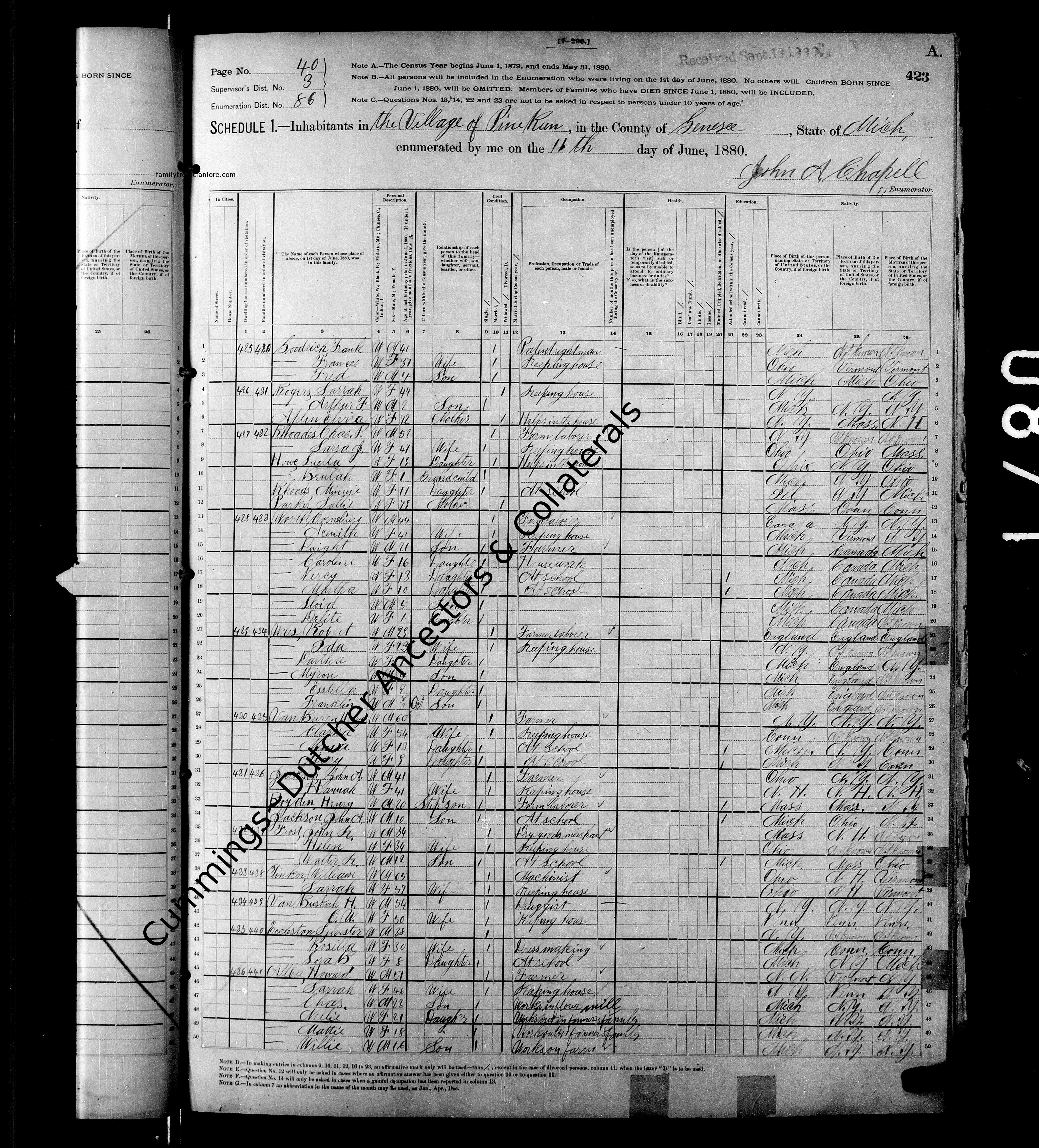 | Census | William Tinker - View family 1850 (Age 27) Monroe, Ashtabula County, Ohio