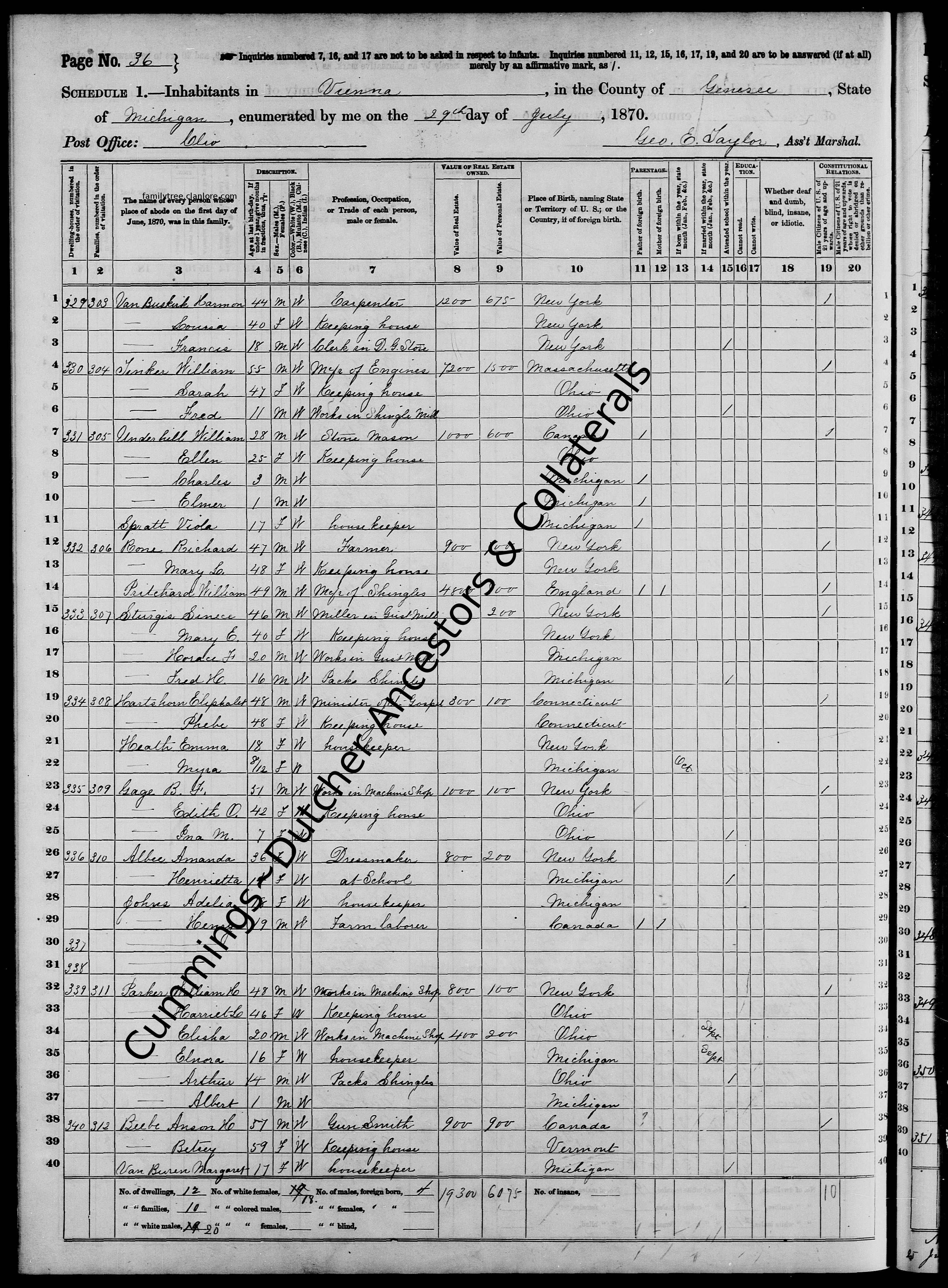 | Census | William Tinker - View family 1860 (Age 37) Monroe, Ashtabula County, Ohio