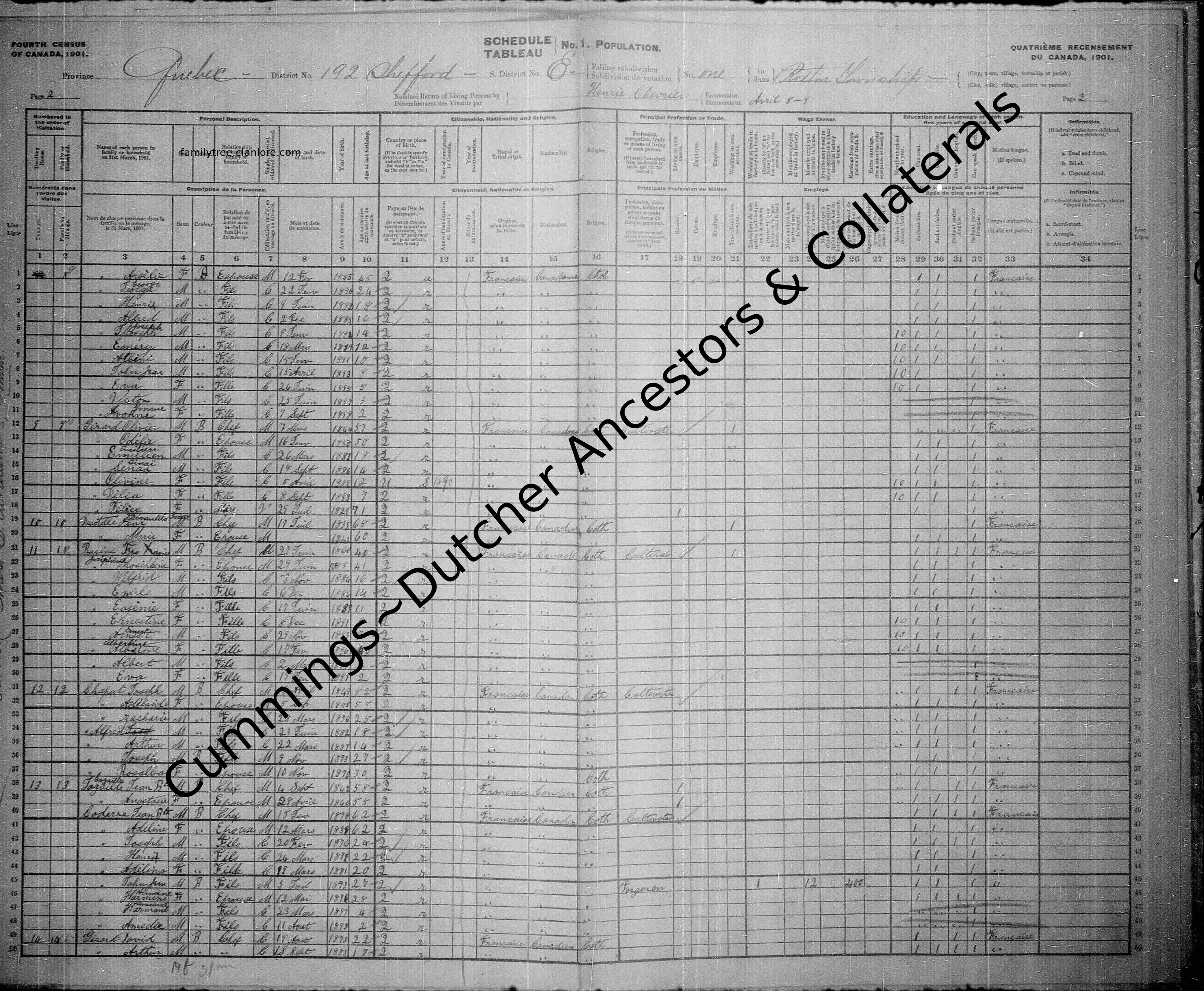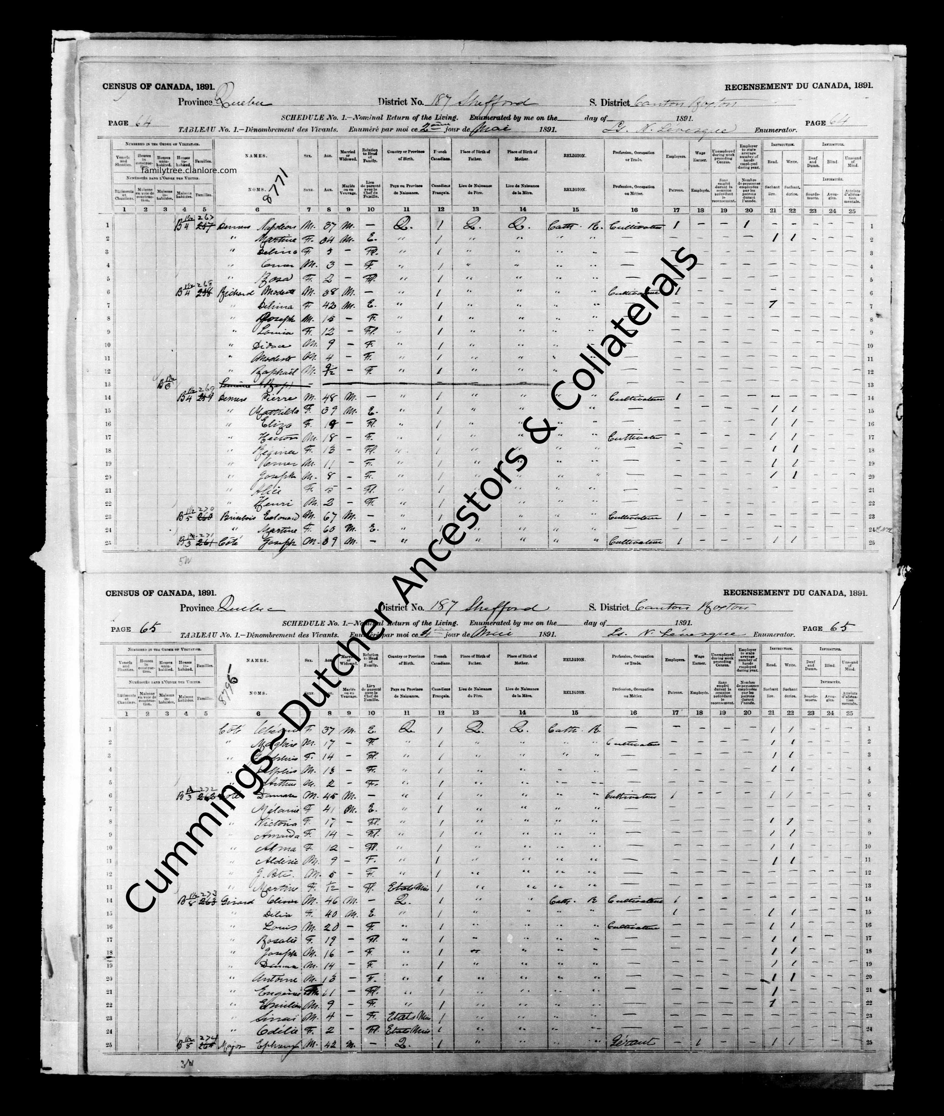 "Canada Census, 1891," database, <i>FamilySearch</i> (https://familysearch.org/ark:/61903/1:1:MW52-2S8 : 4 August 2016), Olivier Gerard, Roxton, Shefford, Quebec, Canada; Public Archives, Ottawa, Ontario; Library and Archives Canada film numbe r 30953_148223. |