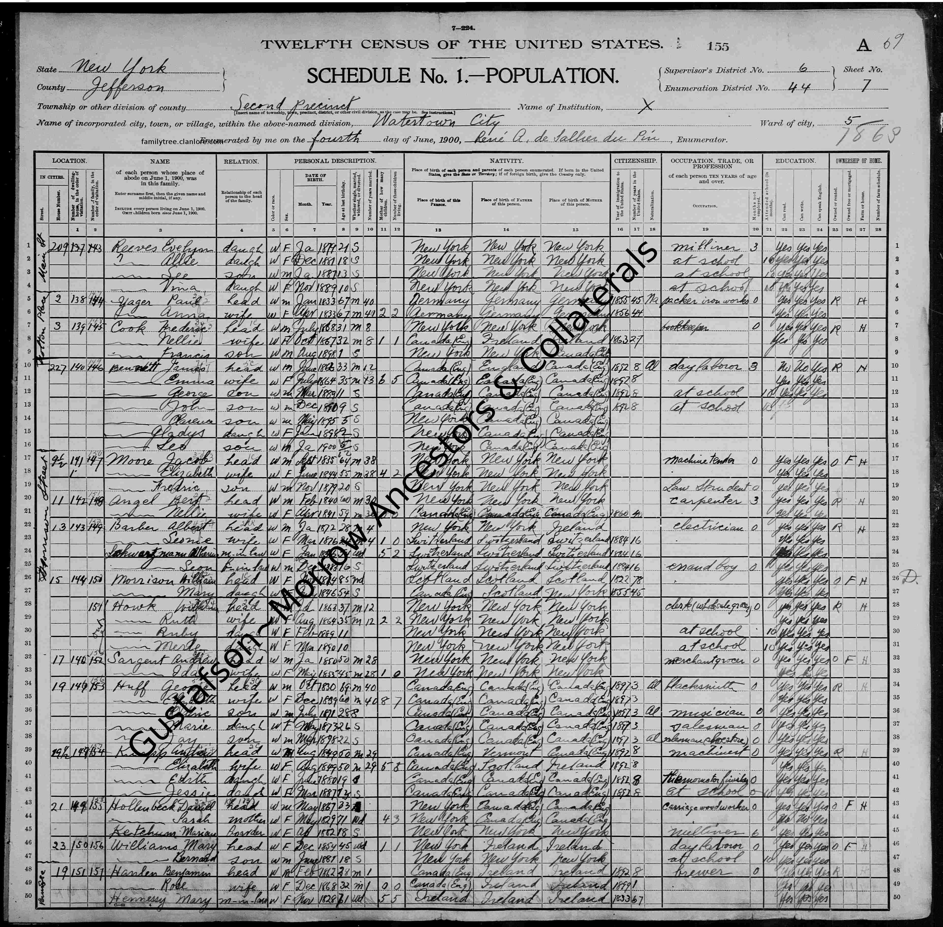 Census | James G Bennett - View family 1920 (Age 55) Watertown, Jefferson, New York, United States |