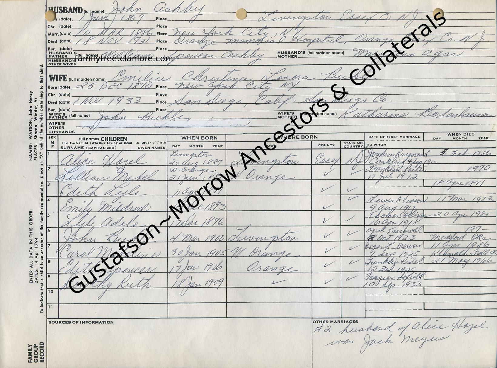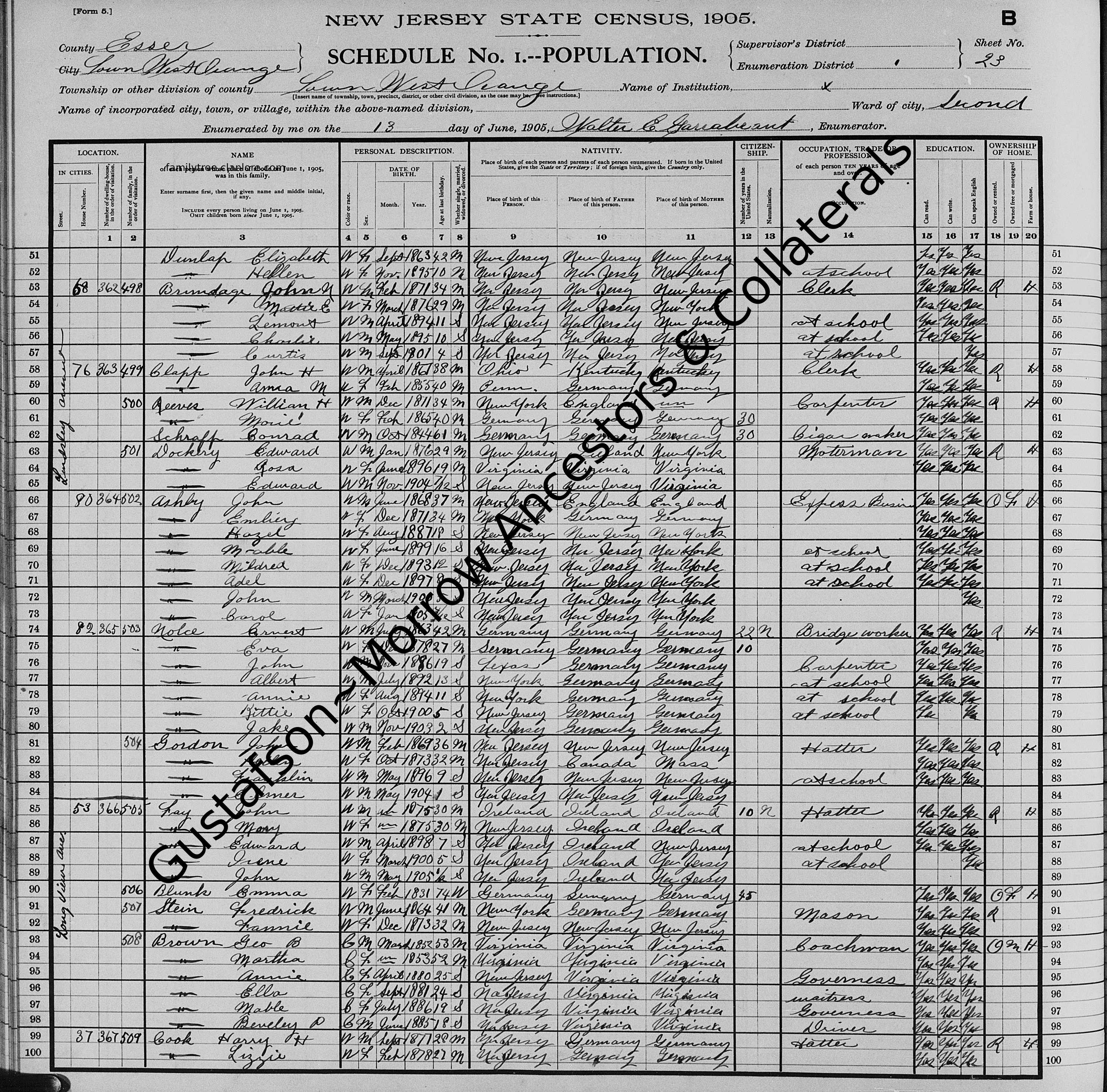 Census | John Ashby - View family 1905 (Age 34) Town of West Orange, Essex Co., New Jersey Address: 80 Lindsley Ave Note: New Jersey State Census |