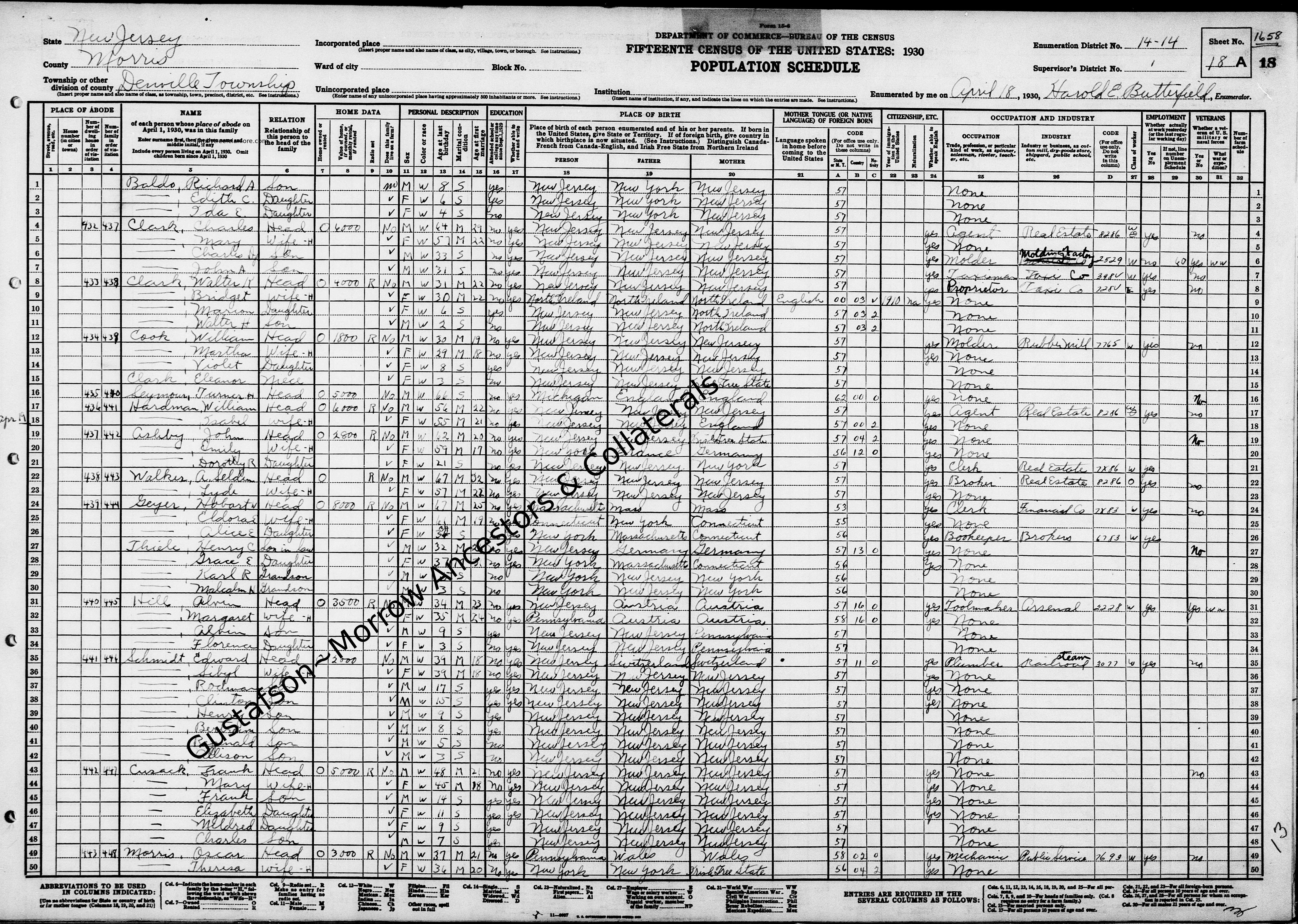 Census | John Ashby - View family 1930 (Age 59) Denville, Morris Co., New Jersey Note: This is the 2nd Census they are in for this year, they are also with their daughter Emily Mildred Ashby Vinson, living on, Hazel Ave., Livingston Township, Essex Co., New Jersey. |