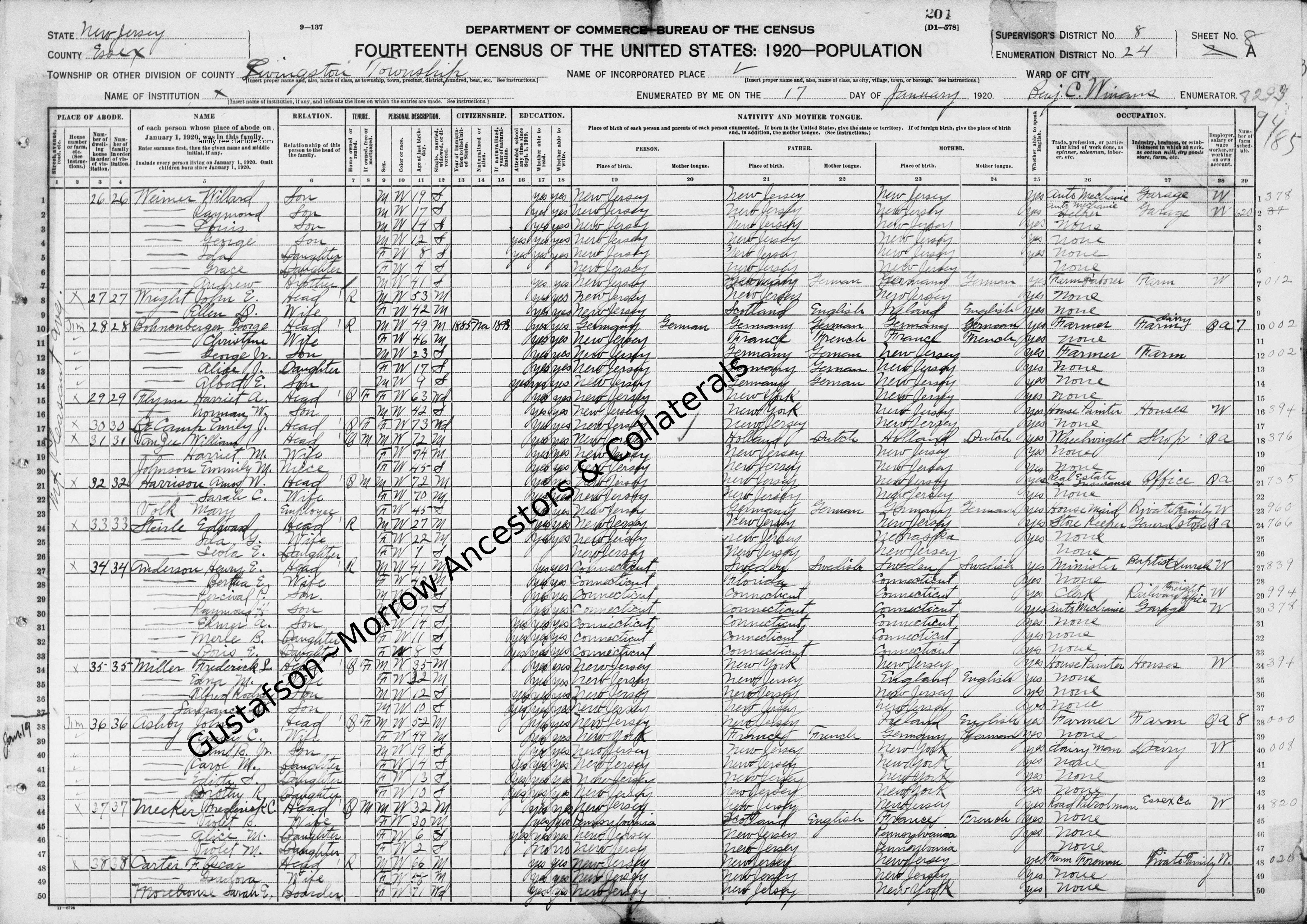 Census | John Ashby - View family 1920 (Age 49) Livingston Township, Essex Co., New Jersey Address: Mount Pleasant Ave |